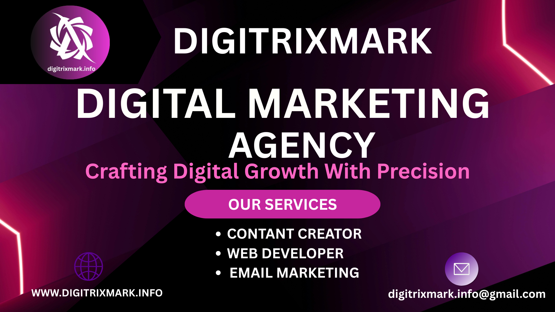 Welcome to DigitrixMark, your trusted partner in digital marketing. In today's fast-moving online world, every business needs a strong digital presence to connect with customers, build trust, and grow. That's where DigitrixMark comes in. We help businesses like yours stand out online with smart and creative marketing strategies. Our services include SEO, social media marketing, paid ads, content creation, and complete brand-building solutions. Whether you are a startup or an established company, we create custom plans to fit your goals and budget. At DigitrixMark, we believe in simple yet effective strategies that deliver real results. Our focus is not only on increasing traffic but also on building meaningful connections that turn visitors into loyal customers. With a dedicated team and a results-oriented approach, DigitrixMark is here to support your business. Let's grow together in the digital world!
